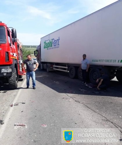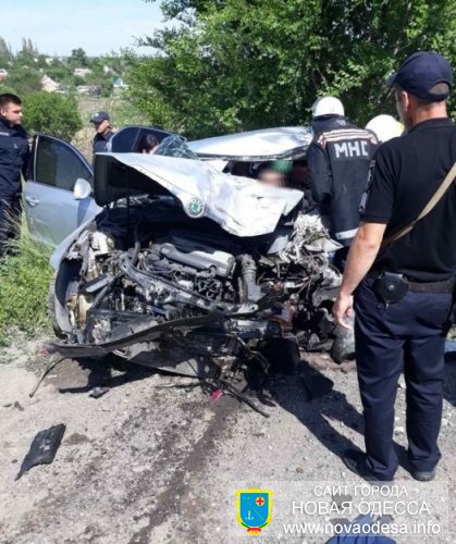 ДТП произошло на крутом спуске возле села Троицкое. Автомобиль «Шкода», ехавший со стороны Новой Одессы в направлении Вознесенска, выехал во время обгона на полосу встречного движения, где лоб в лоб столкнулся с ехавшей навстречу фурой.